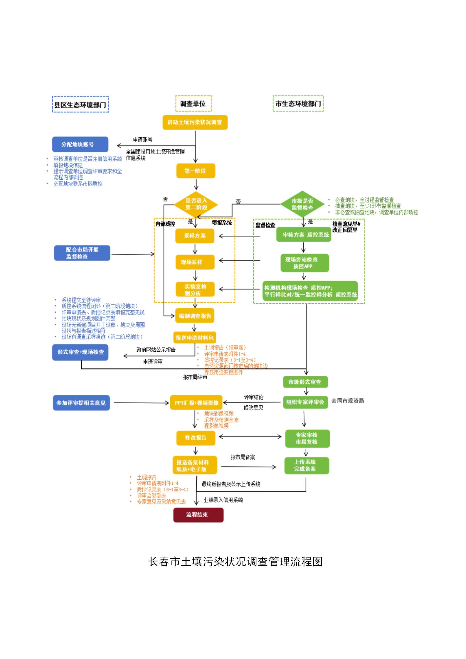 土壤污染状况调查应当依据国家颁布的技术导则、指南等技术标准开展,要按照《建设用地土壤污染状况调查监督检查和全过程质量监管工作方案》(长环土〔2025〕1号)等要求落实相关质控和管理规定,填报“全国建设用地土壤环境管理系统”,规范编制土壤污染状况调查报告;相关业绩填报“建设用地土壤污染风险管控和修复从业单位和个人执行情况信用记录系统”。拟通过市级评审备案的土壤污染状况调查报告,请按长春市土壤污染状况调查评审管理流程履行相关程序。