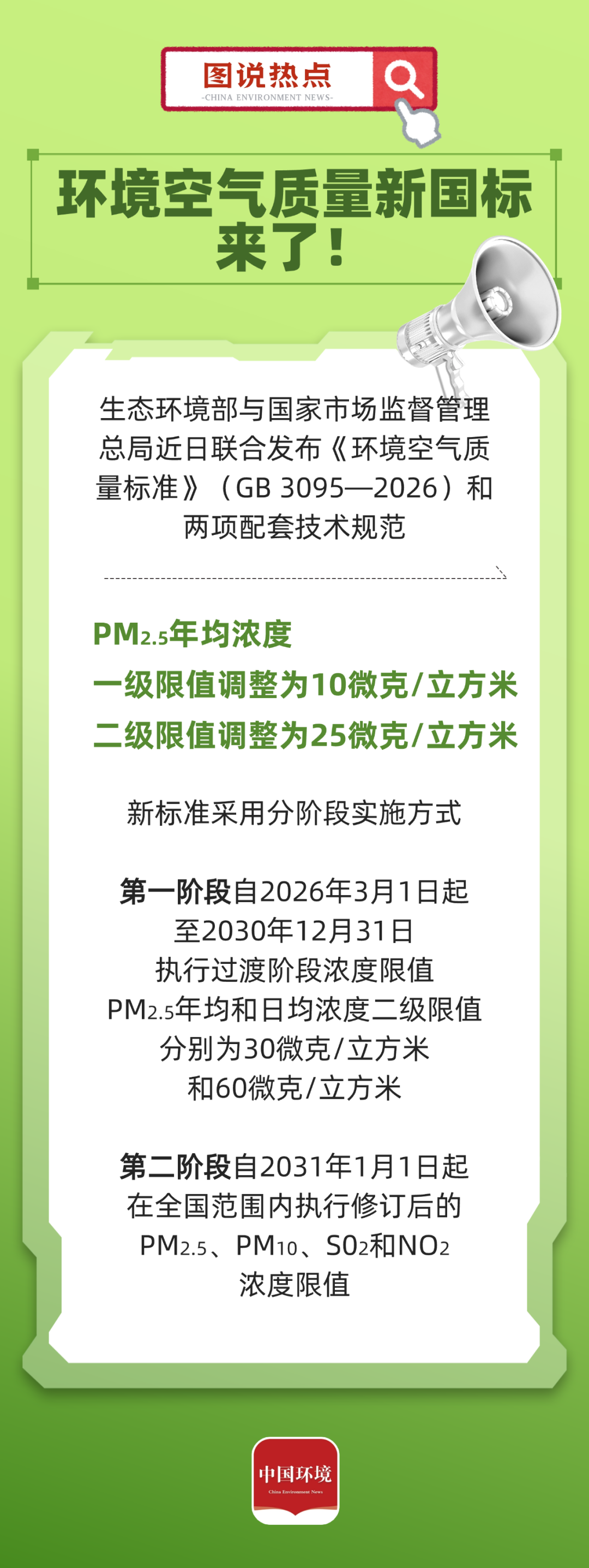 新国标来了!PM2.5年均浓度一级限值调整为10微克/立方米,二级限值调整为25微克/立方米