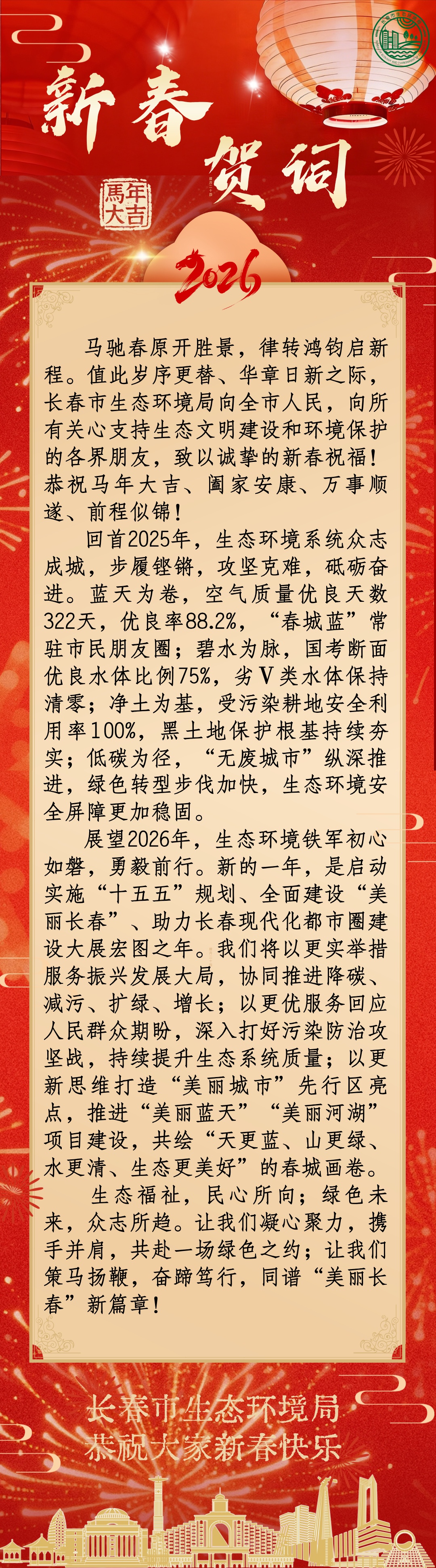 长春市生态环境局2026年新春贺词