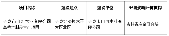【经开分局受理公示15005】长春市山河木业有限公司高档木制品生产项目